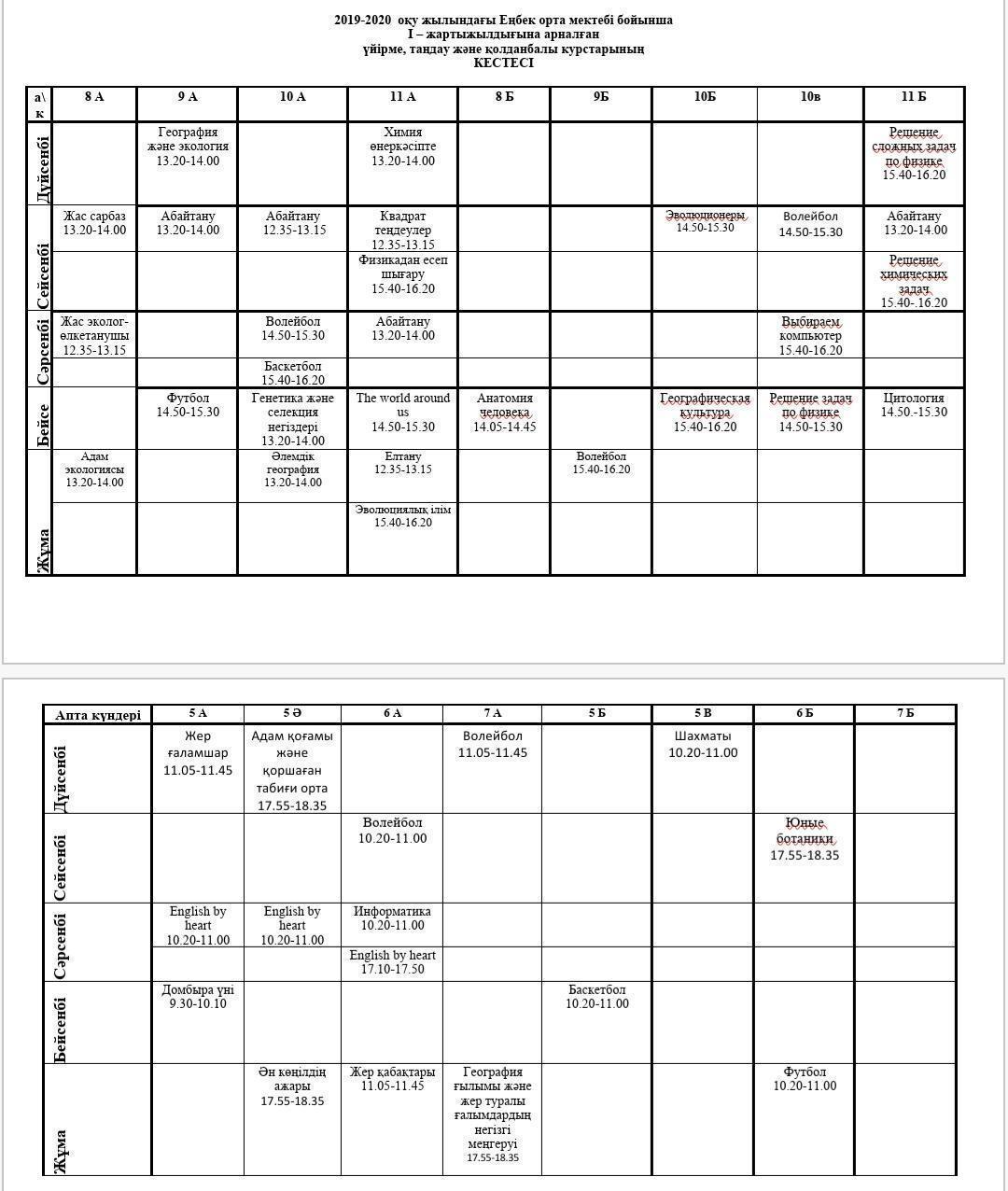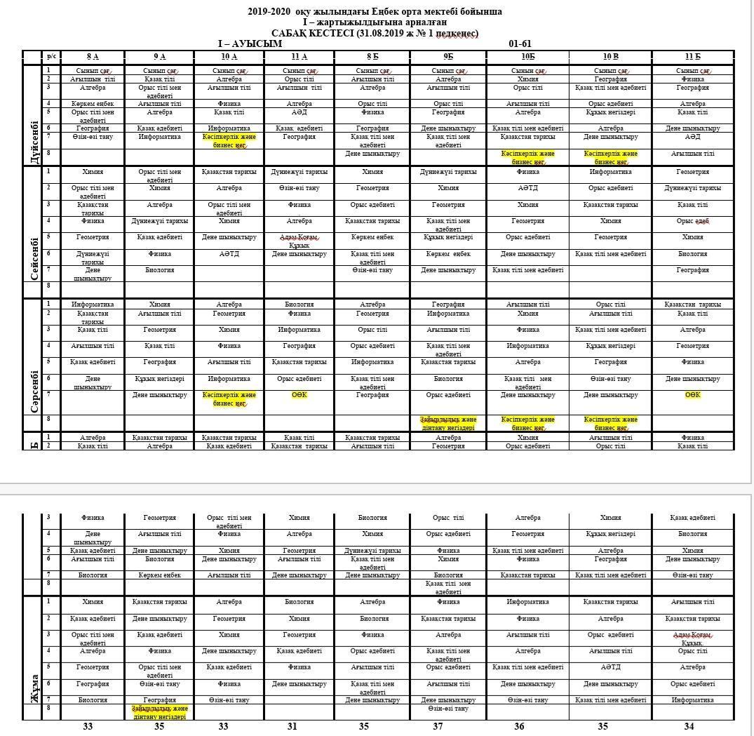 Сабақ кестесі/ Расписание » Еңбек орта мектебі